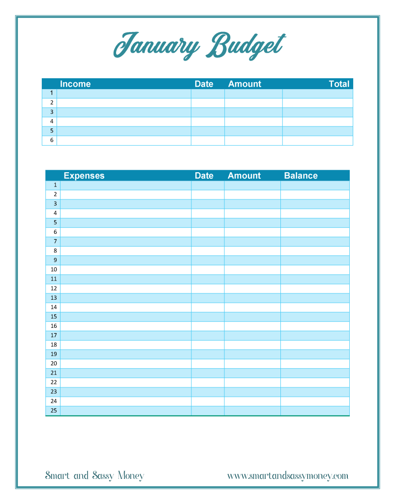 Sign up here to get the free 12 Month Budget Template. The files are downloadable PDF documents and can be used every year. There is one page for every month. Also included is a Notes sheet so that you can keep notes about unexpected expenses and savings!